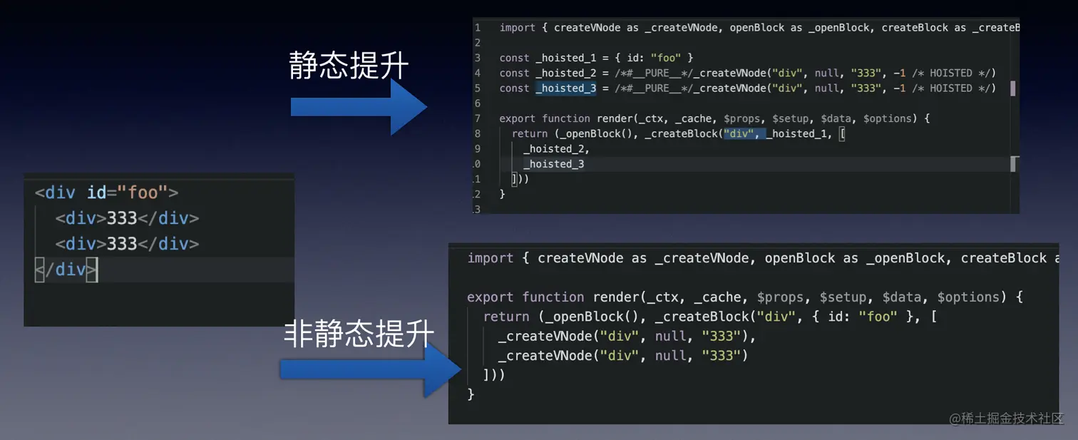 - hoistStatic() // 静态节点提升