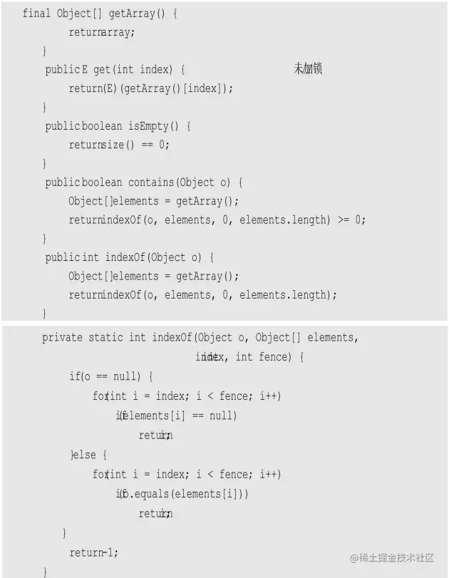 下面是CopyOnArrayList的几个“读”函数:
