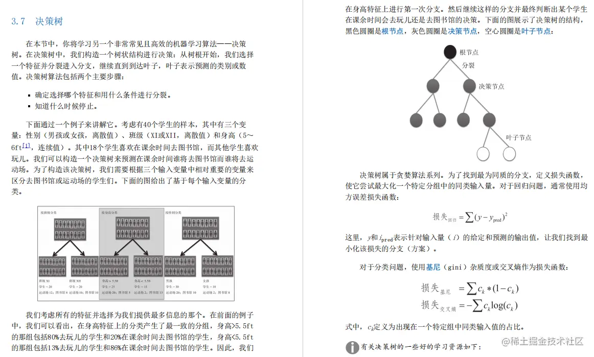 在本节中,你将学习另一个非常常见且高效的机器学习算法——决策树。在决策树中,我们构造一个树状结构进行决策:从树根开始,我们选择一个特征并分裂进入分支,继续直到到达叶子,叶子表示预测的类别或数值。