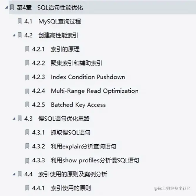 MySQL调优对于很多程序员而言,都是一个非常棘手的问题,多数情况都是因为对数据库出现问题的情况和处理思路不清晰。在进行MySQL的优化之前必须要了解的就是MySQL的查询过程,很多的查询优化工作实际上就是遵循一些原则让MySQL的优化器能够按照预想的合理方式运行而已。 就在昨天我在百忙之中抽出空余时间面试了个腾讯30k出来的,我开口就是:MYSQL性能调优如何入手?他的回答的:基础优化、优化的哲学、优化需求、优化的思路、存储引擎层、数据库优化、等等细节,好吧我承认我败了。 但是我严重怀疑他是做了准备而来的,不然没有什么人可以记得这么清楚有条理,果不其然,在他入职之后说出了实情; 在他们团队内部有一本多名大佬推荐的【MySQL性能优化和高可用架构实践】文档 由于文章幅篇的限制小编用截图的方式给大家展示需要获取完整版的朋友点进去了解一下,点击——【传送门】——即可~