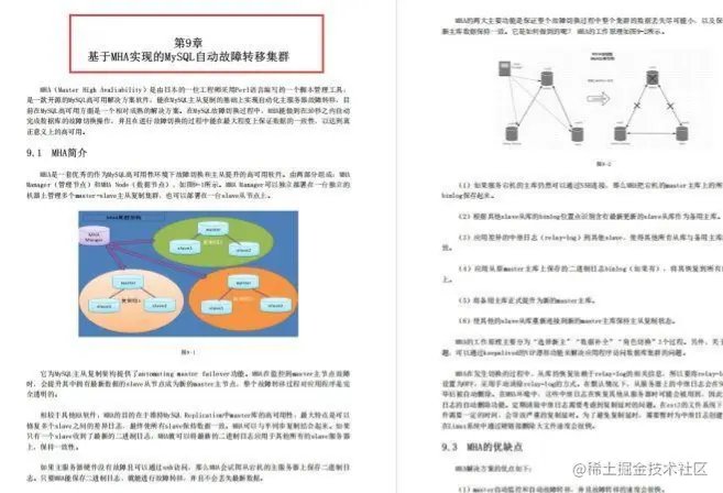 MHA是一套优秀的作为MySQL高可用性环境下故障切换和主从提升的高可用软件。由两部分组成:MHAManager(管理节点)和MHA Node(数据节点),如图9-1所示。MHA Manager可以独立部署在一台独立的机器上管理多个master-slave主从复制集群,也可以部署在一台slave从节点上。