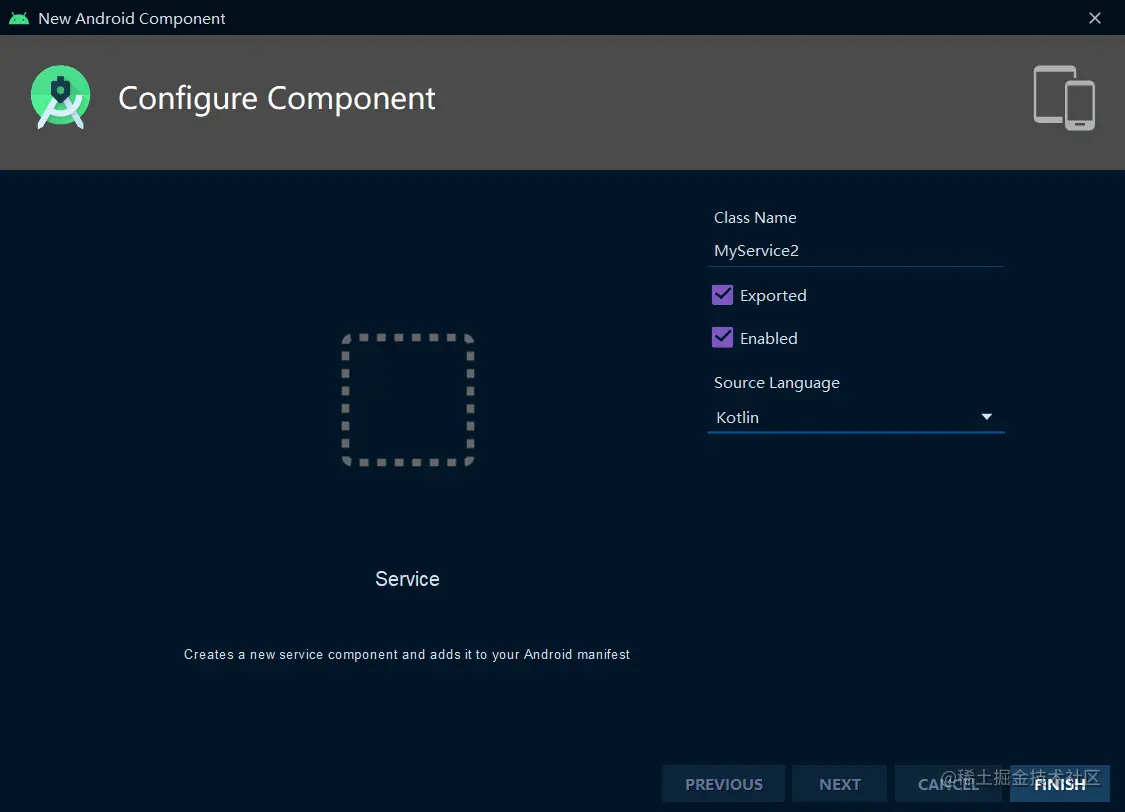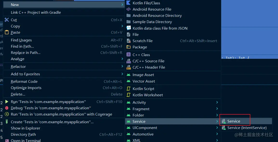 我们使用Android Studio快速新建一个Service