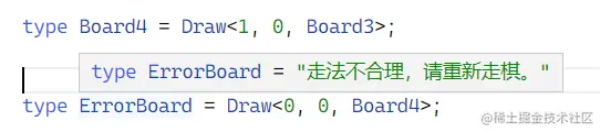 type GenerateBoardError<B extends Board<BoardLines, SignType>> = '走法不合理,请重新走棋。'