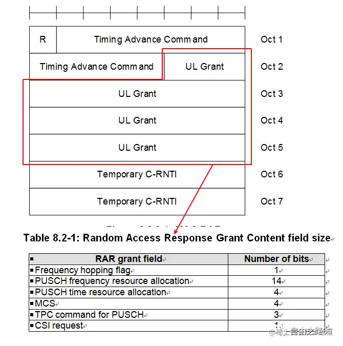 如果解析到RAPID与UE发送的Random Access Preamble匹配,如果 不是SI-Request触发的随机接入,则后面携带了MAC RAR,MAC RAR中包含了Timing Advance Command,UL Grant和Temporary C-RNTI指示,此时认为网络响应了UE的随机接入请求,通过TA调整发送时刻,UL Grant调度发送MSG3,继续后续的随机接入过程;