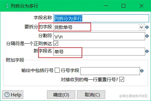 限制1:表示只读取标题字段下的第一行。(如下图) 根据列拆分多行进行转换:选择前面的字段,并设置向后传递的字段名字。