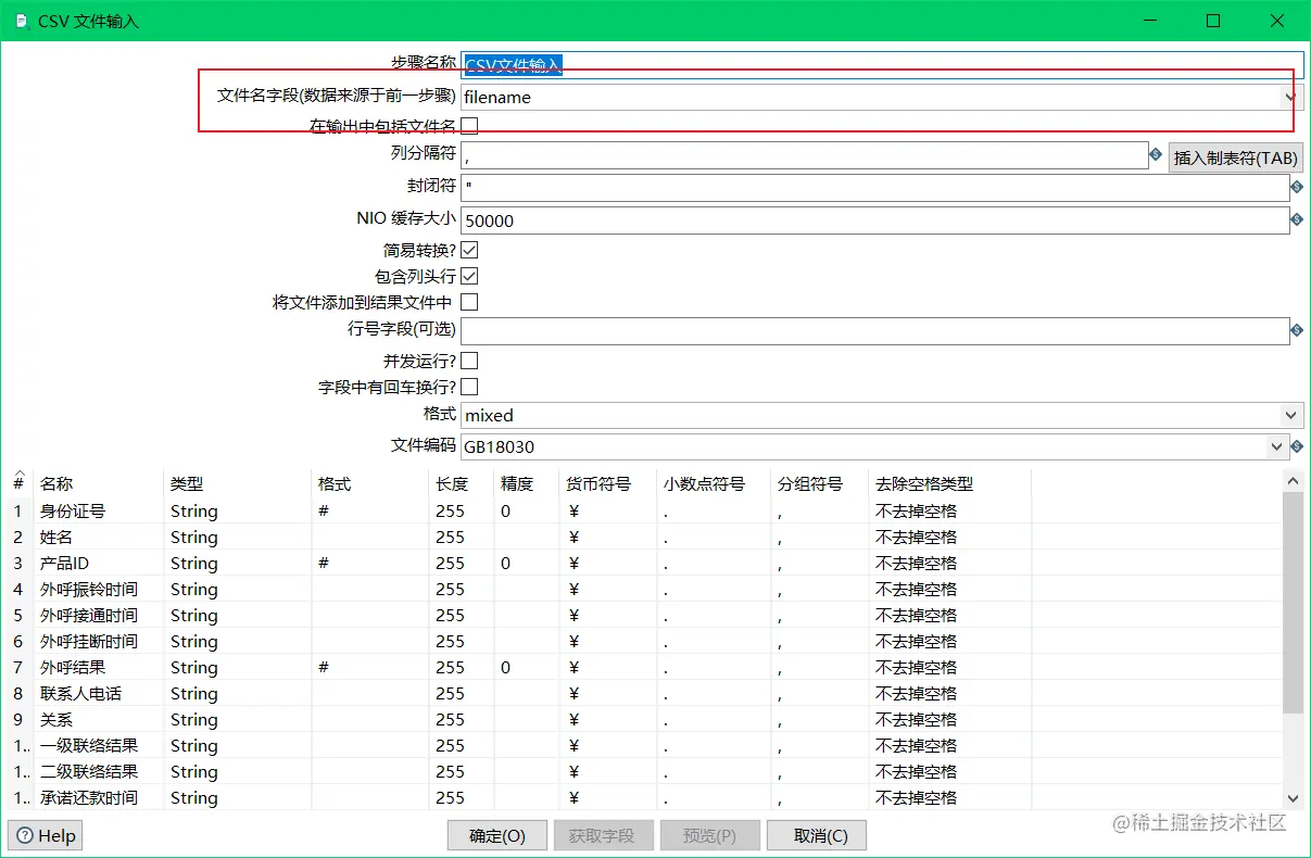获取文件名匹配类似与execl输入组件,在预览数据的时候需要注意的filename参数,后续用到。