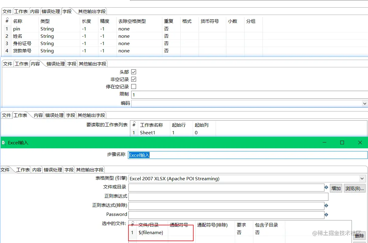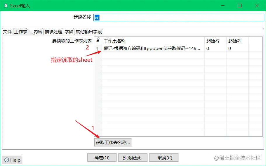 Execl2输入组件需要注意的点是sheet数据读取的起始位置: