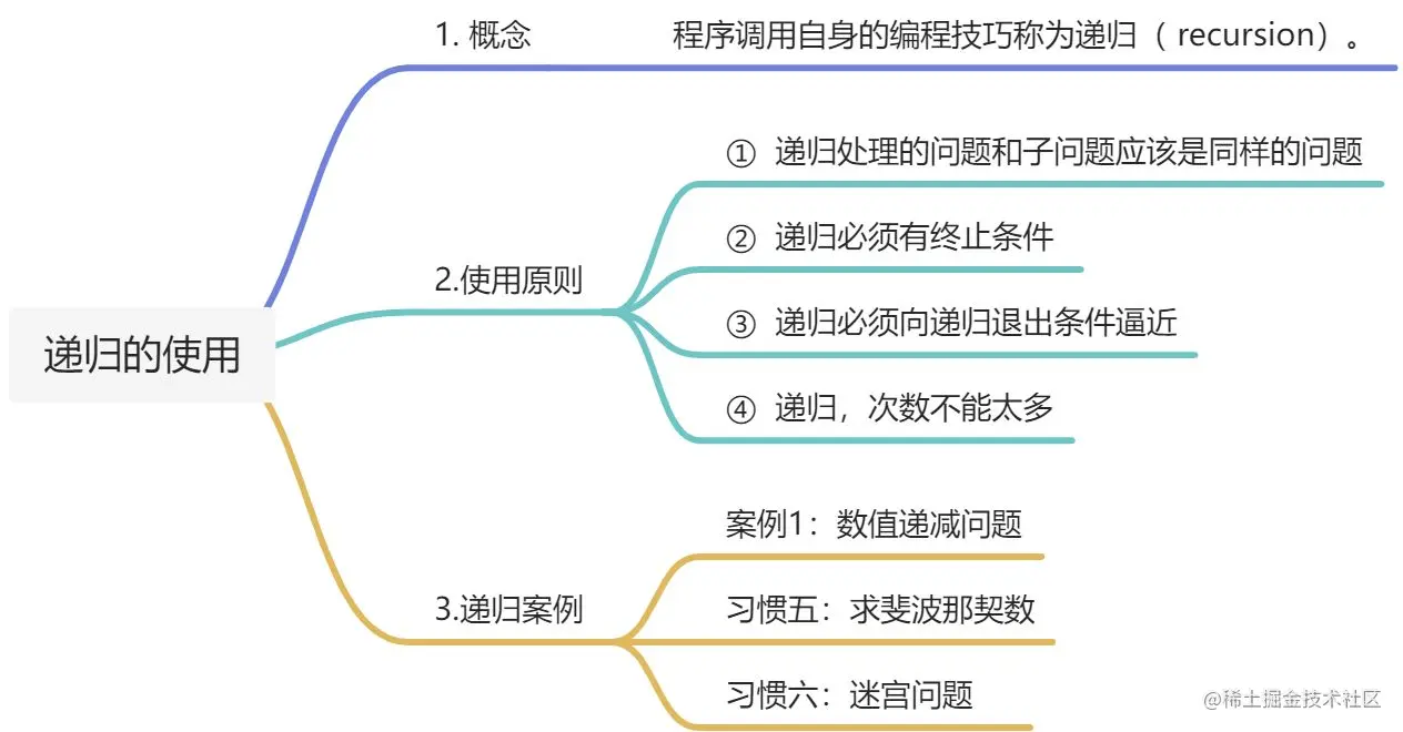 :::info 💡 递归:可以在代码中,显著减少代码量;用简单代码解决复杂问题,提高代码的可读性;实际应用:比如用递归解决阶乘问题,斐波那契数列等。 :::