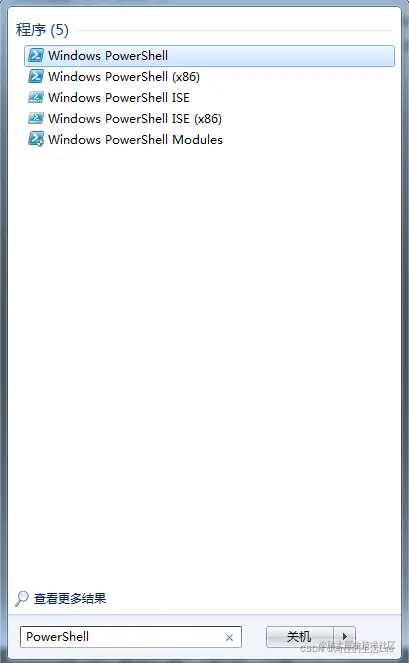 点击开始菜单,搜索PowerShell,注意这个地方使用管理员运行