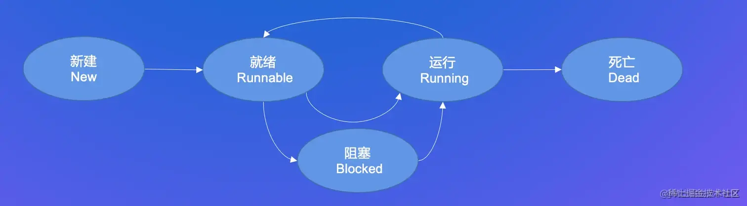 线程的生命周期:包括新建、就绪、运行、阻塞、死亡五种状态