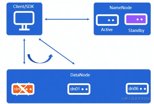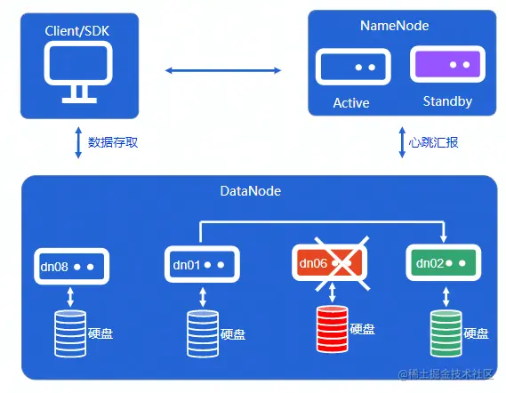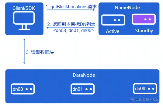- NameNode根据DataNode汇报信息动态维护位置信息