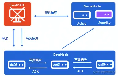 - 租约:client要修改一个文件时,需要通过NameNode上锁,这个锁就是租约
