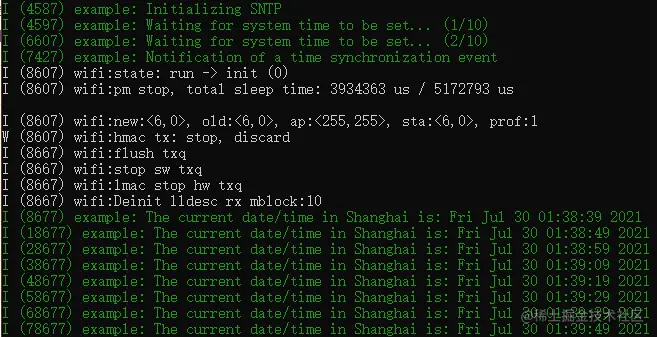 SNTP_UPDATE_DELAY,到下一次发起更新时间请求的间隔时间,单位是ms,最小不能小于15s,也是通过make menuconfig修改CONFIG_LWIP_SNTP_UPDATE_DELAY。 在 make menuconfig -> Component config -> LWIP -> SNTP -> Request interval to update time (ms). -
