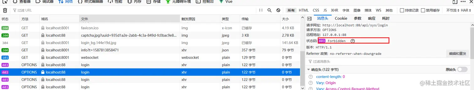问题描述:已拦截跨源请求:同源策略禁止读取位于 http://localhost:88/api/sys/login 的远程资源。