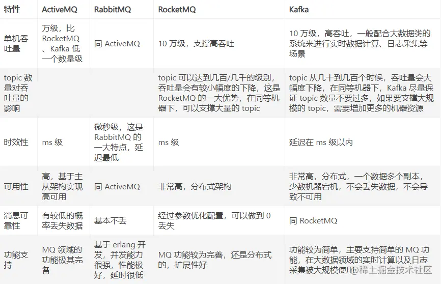 九、常见消息队列对比