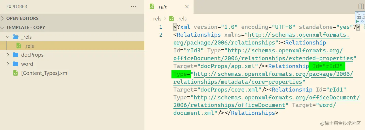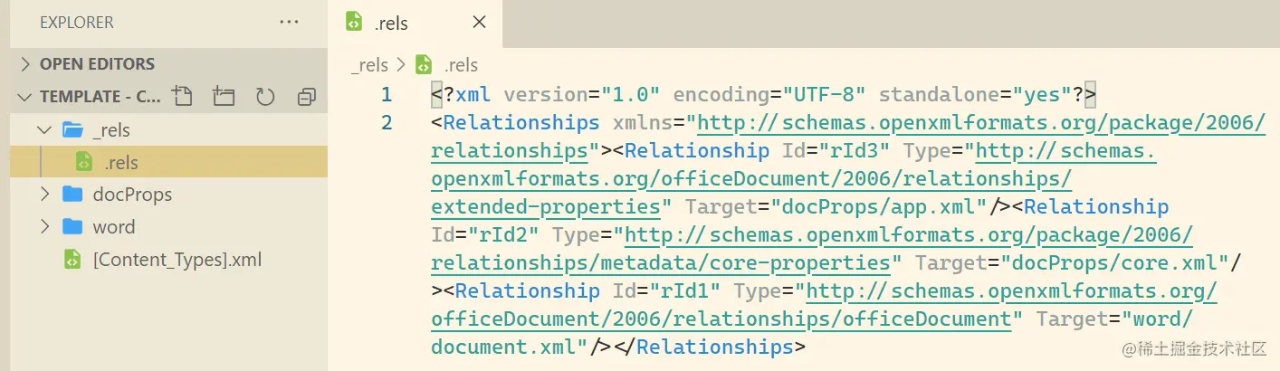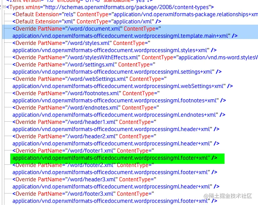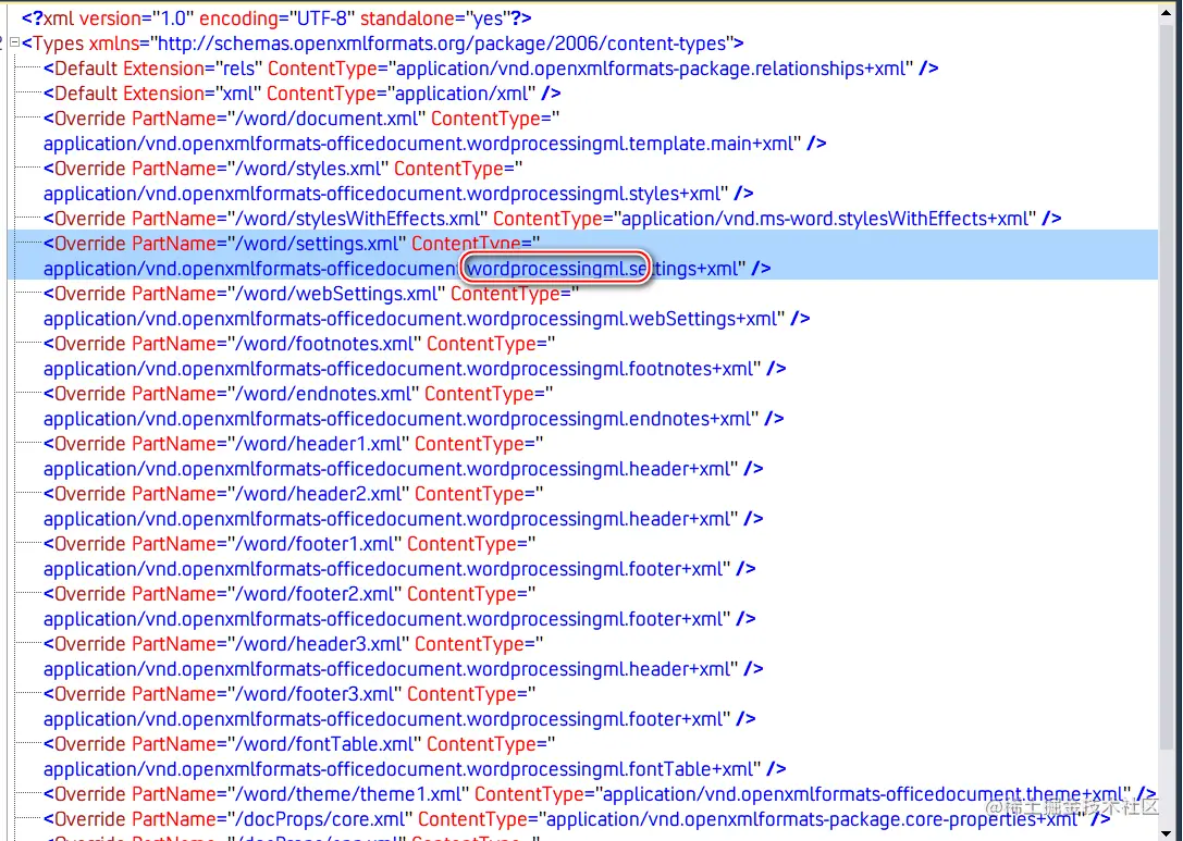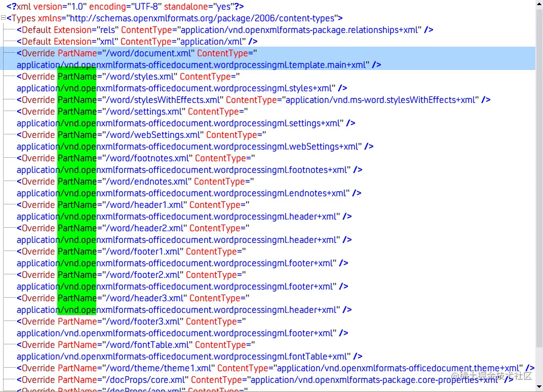 每个 part 也有一个内容类型,[Content_Types.xml 提供存档中每个部分的内容类型。