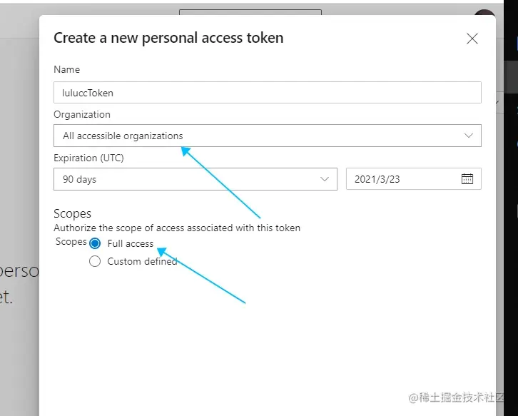 2.注册完成后,创建 Personal Access Token:保存好create后,生成的token