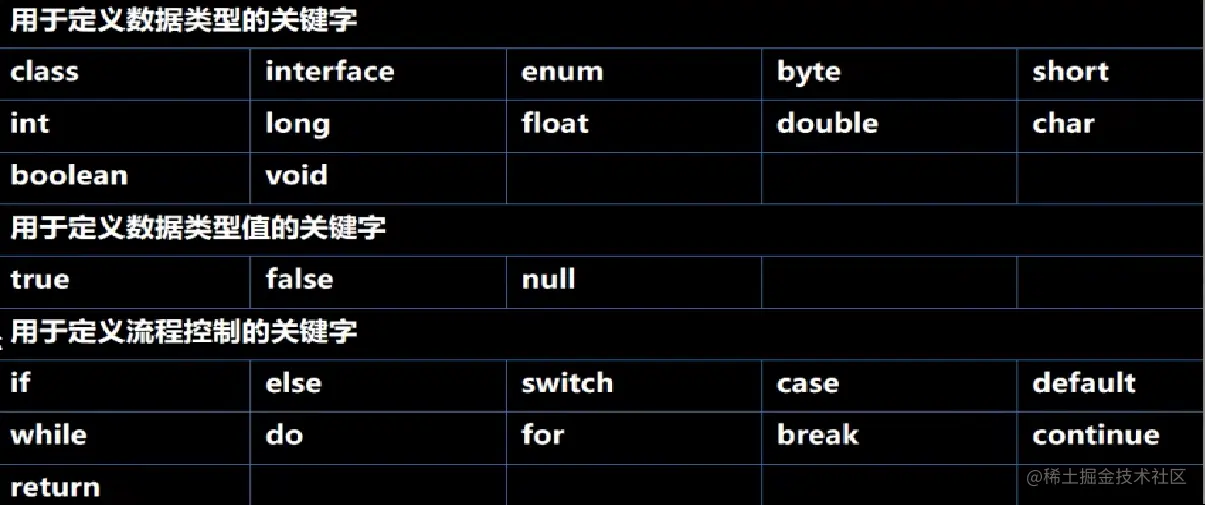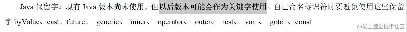 定义:被Java语言赋予了特殊含义,用作专门用途的字符串(单词)