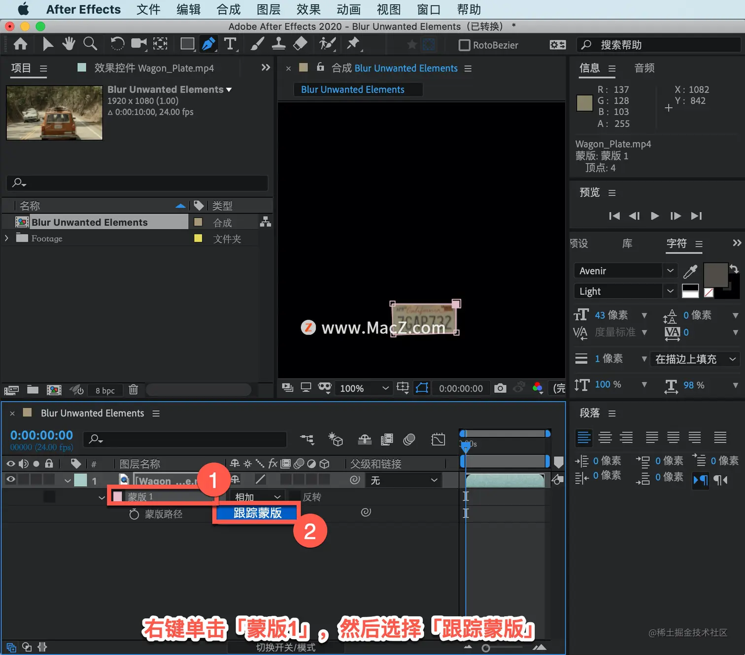 右键单击「蒙版1」,然后选择「跟踪蒙版」,这将打开「跟踪器」。
