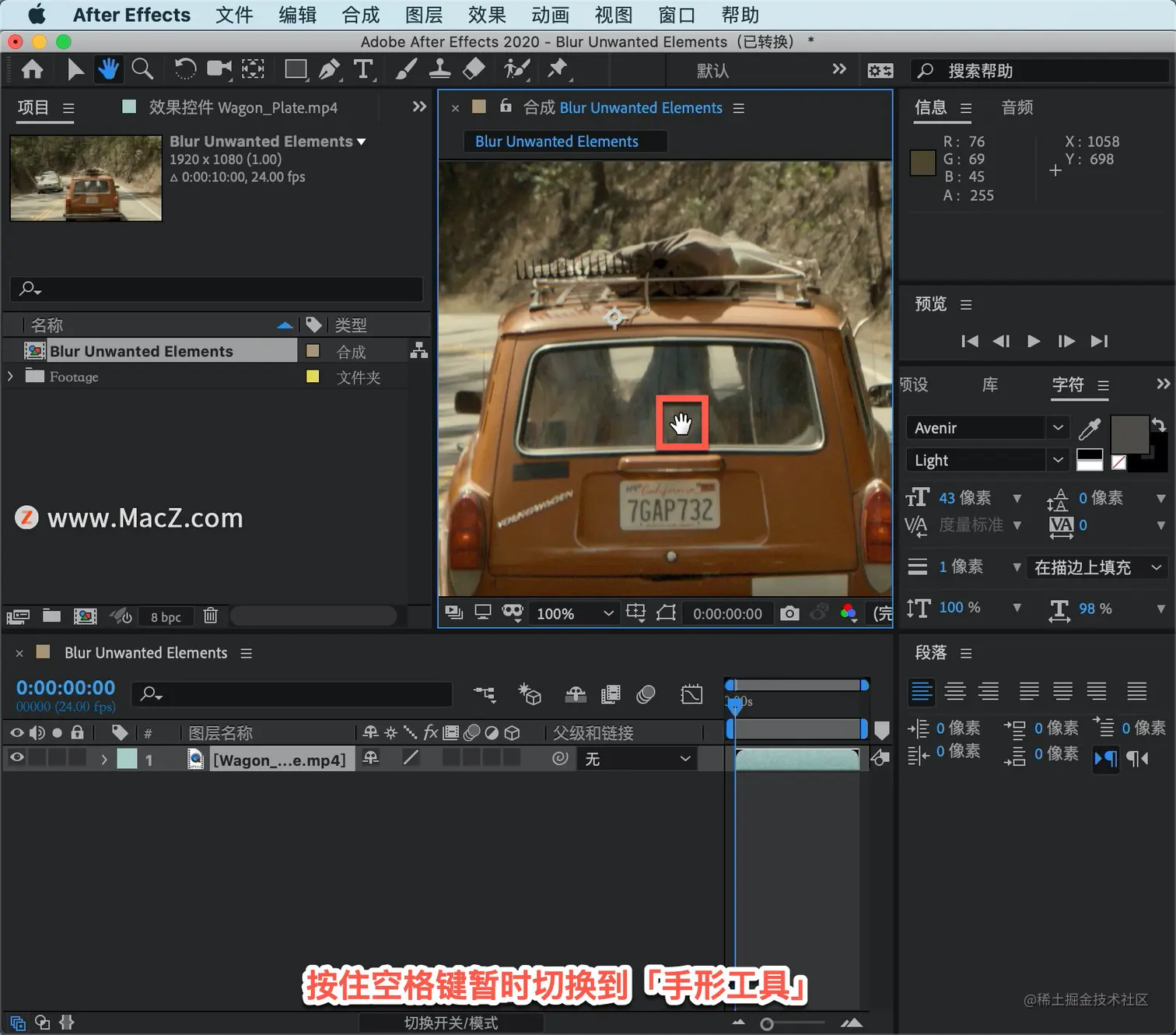 然后按住空格键暂时切换到「手形工具」,只要在单击和拖动时按住空格键,就可以使用「手形工具」重新定位对象。