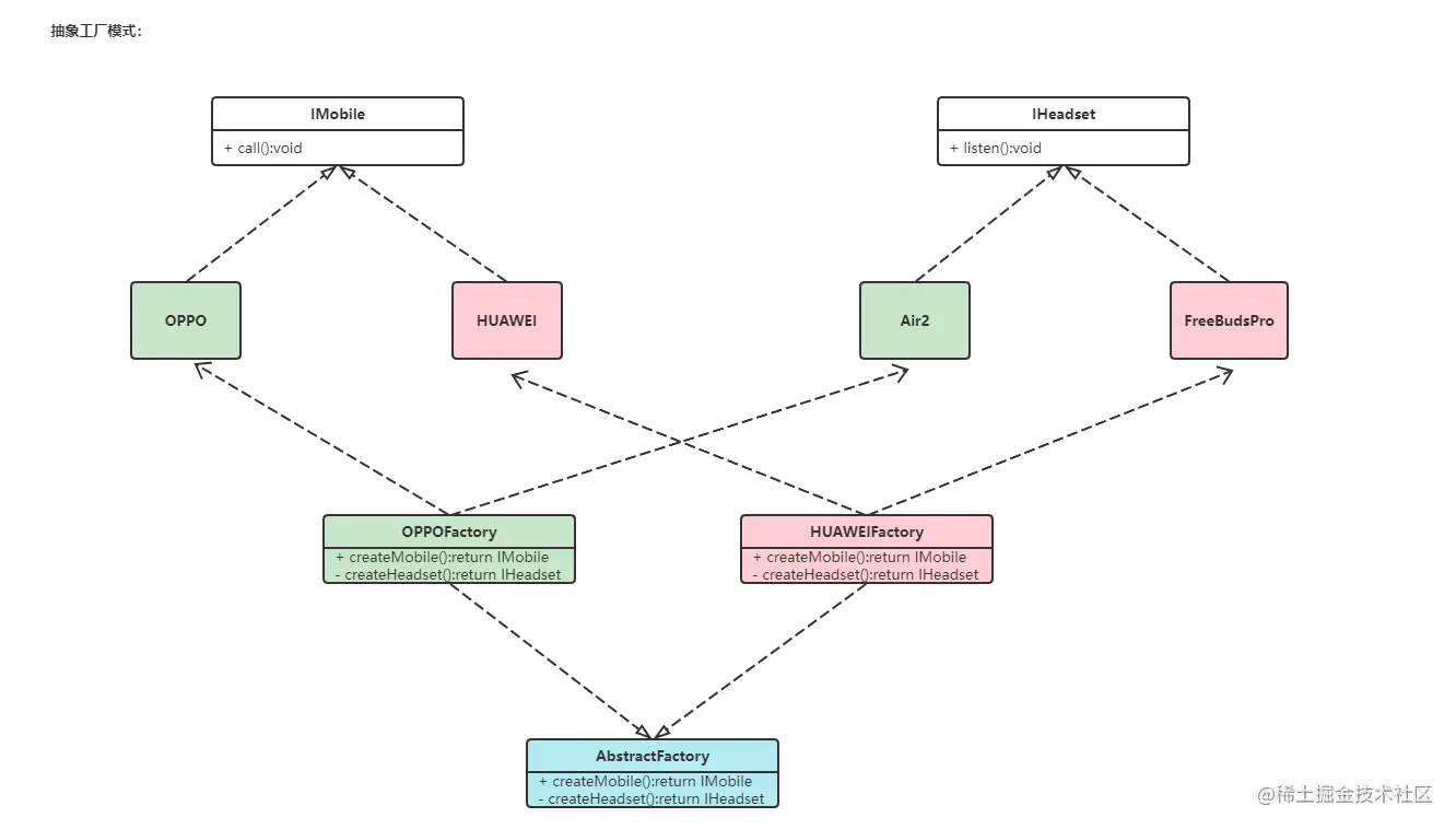 * OPPO、HUAWEI实体工厂类实现AbstractFactory接口。