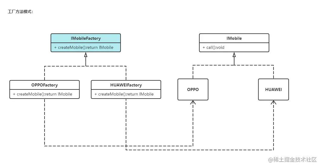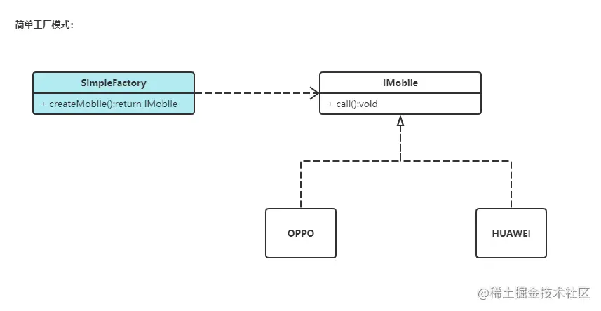 IMobile huawei = simpleFactory.createMobile("HUAWEI");