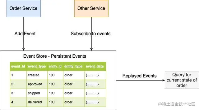 通过事件溯源,业务实体的状态由一系列状态变化的事件跟踪。每当业务实体的状态发生变化时,都会将新事件添加到事件列表中。由于保存事件是一个单一的操作,它本质上是原子的。通过重放事件,应用程序重建实体的当前状态。