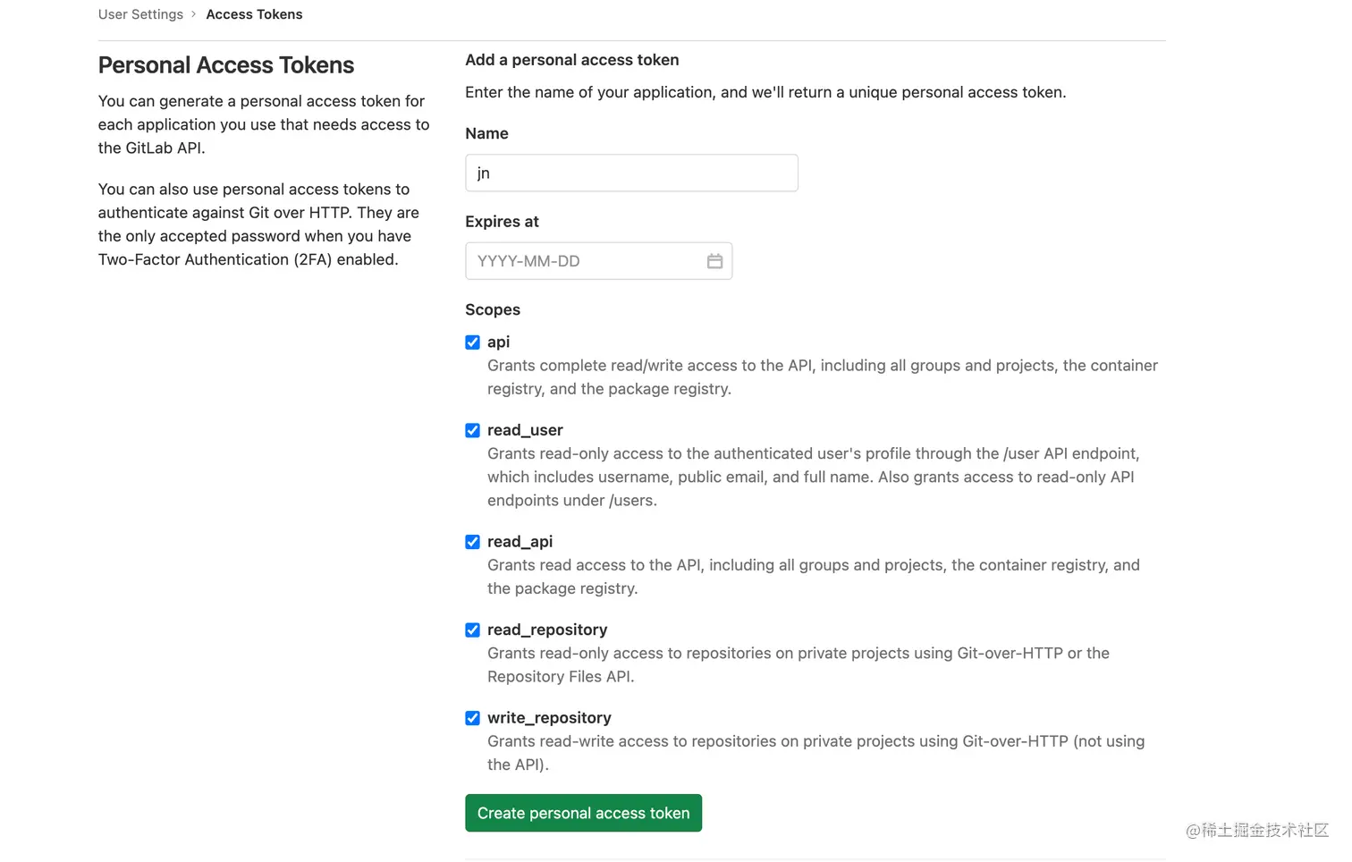 打开个人的设置页面,然后进入到Access Tokens页面中