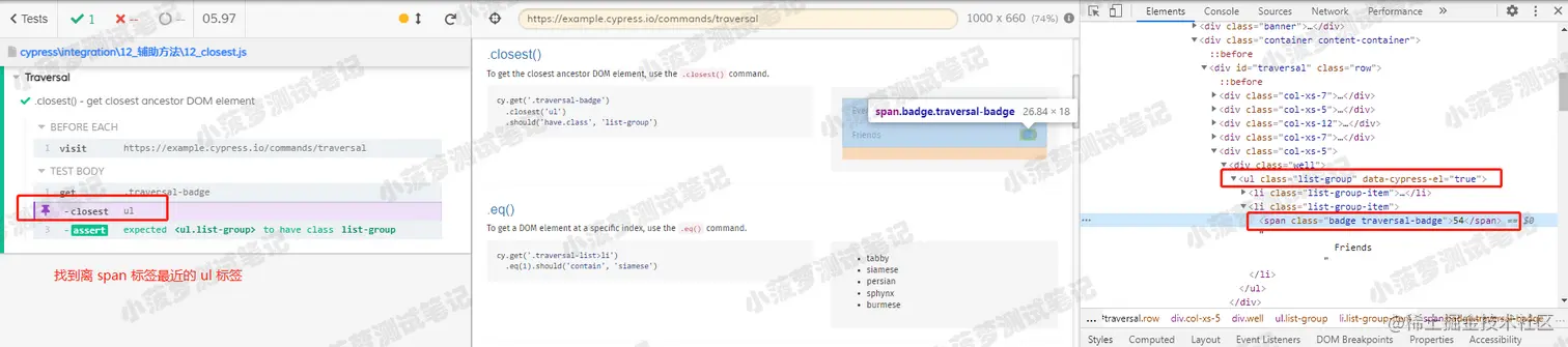 获取匹配到的第一个DOM元素(无论是它本身还是它的祖先之一)