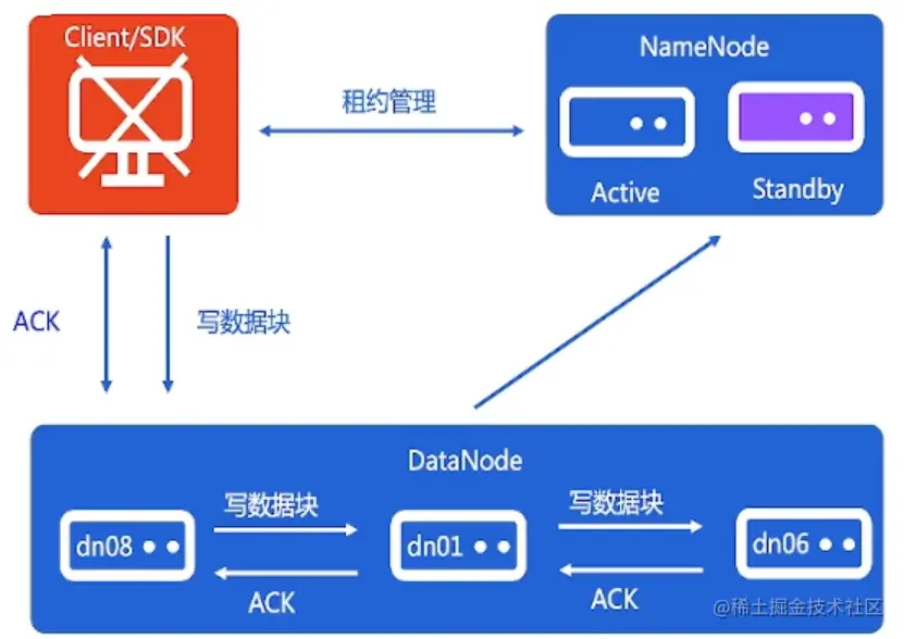情景:文件写入过程中,DataNode侧出现异常挂掉了