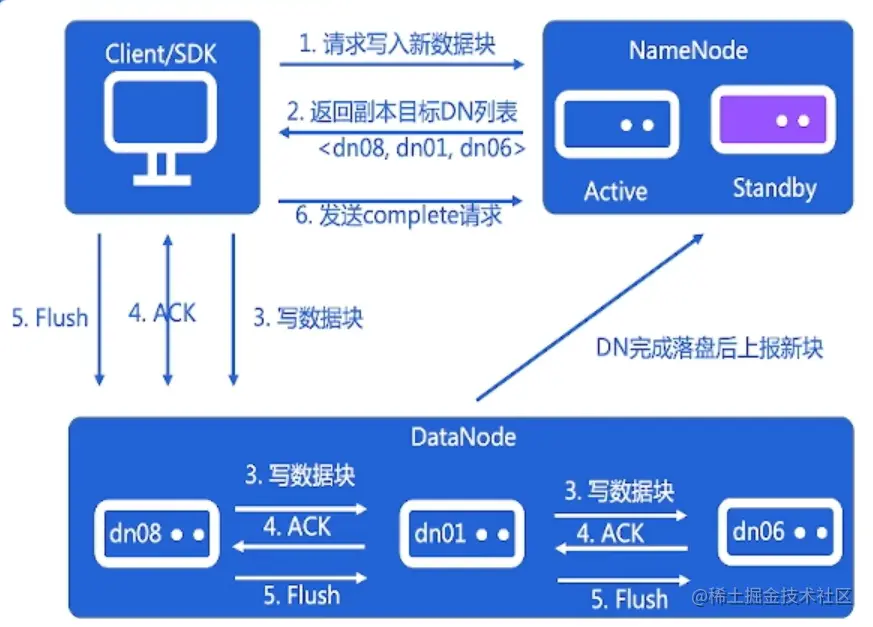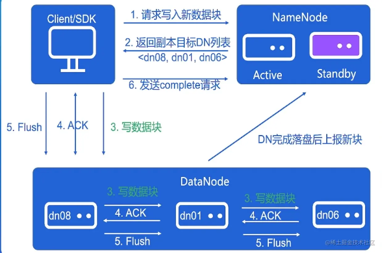 - DataNode以block为单位对数据进行存取
