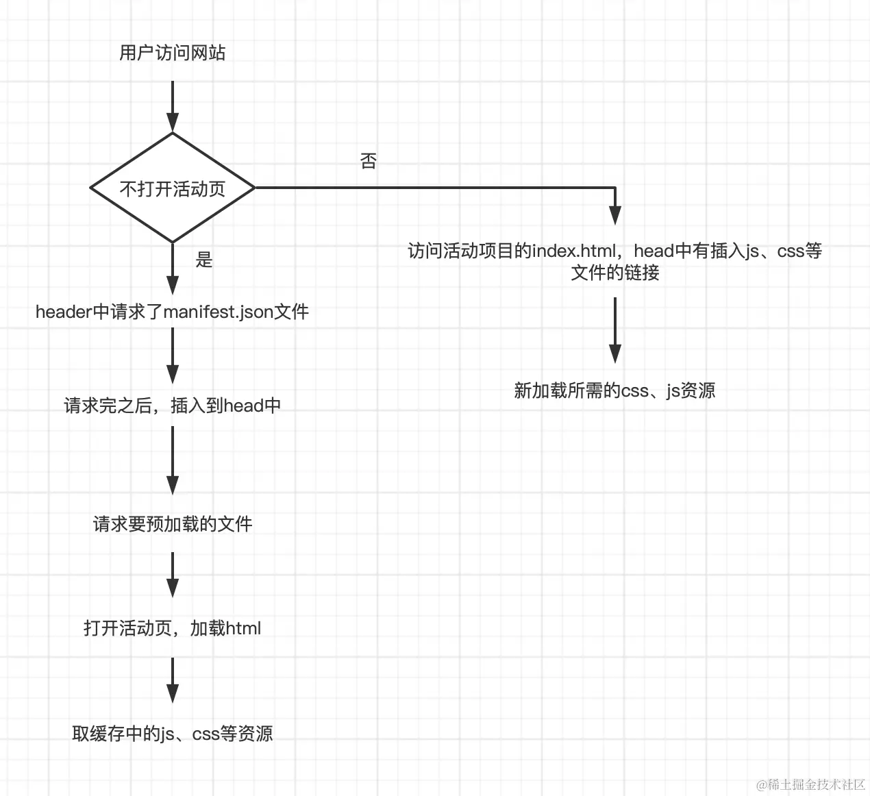 所以经过我们的思考,我们决定将活动单独提出来,作为一个新项目B,在原来的项目A中对项目B中的js、css、img等内容进行预加载,活动开始发开一个新的页面(新项目的),这样我们就可以稍微早一点上线,在活动开始之前,用户访问时,对资源进行预加载,就能大大的减少我们服务器的压力。