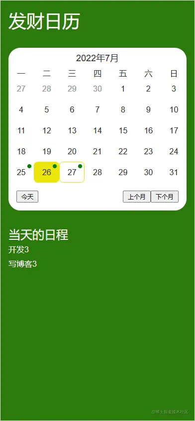 发财日历是一个由纯JS和CSS完成的一个小作品,主要是为了后面项目中作为一个组件复用