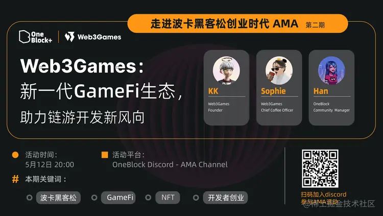 此外,由 OneBlock 和 Polkadot 携手举办的系列 AMA 活动的第二期就邀请到了 Web3Games 的创始人 KK 和 Chief Coffee Officer Sophie 分享 Web3Games 项目的发展之路和参与波卡黑客松项目的经历。(助力传统游戏转型 GameFi,Web3Games 推动游戏发展新航向)