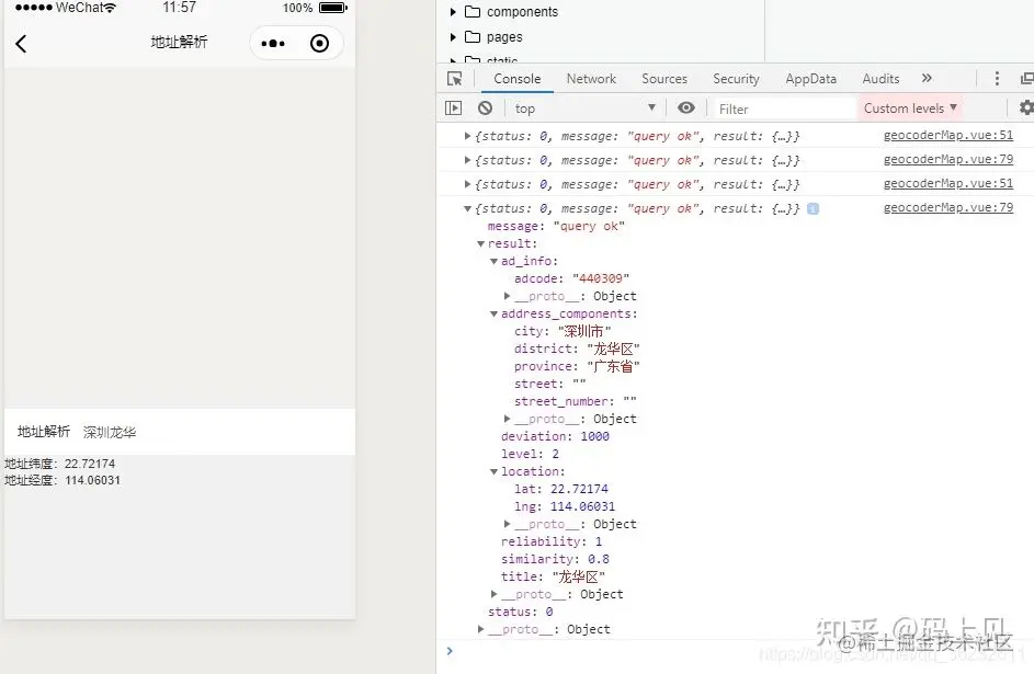 geocoder – 提供由地址描述到所述位置坐标的转换,与逆地址解析reverseGeocoder()的过程正好相反。 预览效果如图: