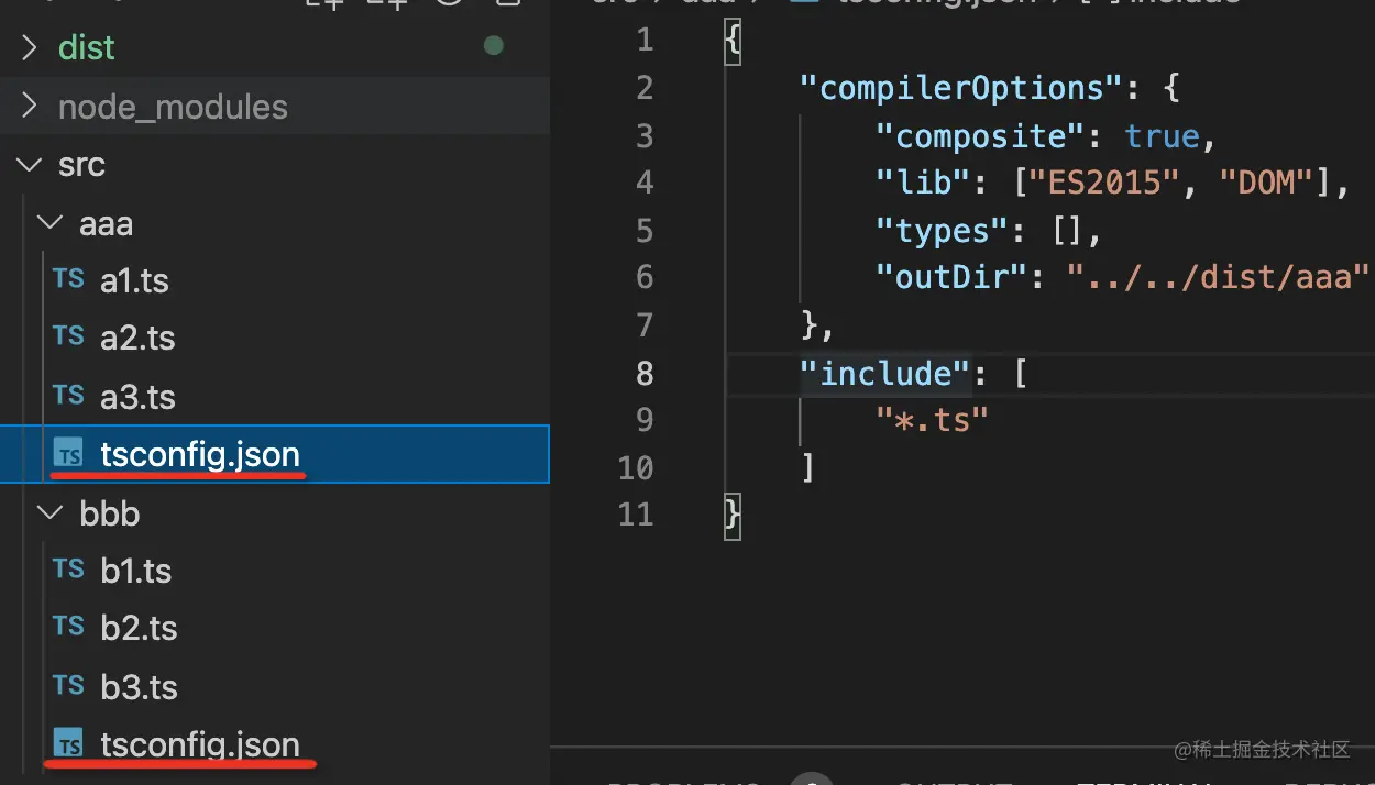 有的同学说,那在 aaa 和 bbb 下分别放一个 tsconfig.json,各自编译各自的不就行了?