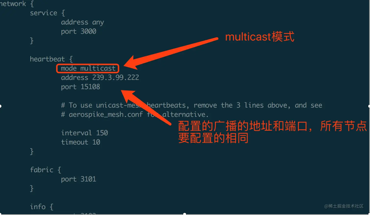 multicast(多播) :,基于UDP协议,集群中所有节点同时在同一个地址发布自己的信息和在该地址监听其他节点的信息,这样所有节点都能知道其他节点的存在了。因此,该模式下只需要配置一个UDP地址即可。