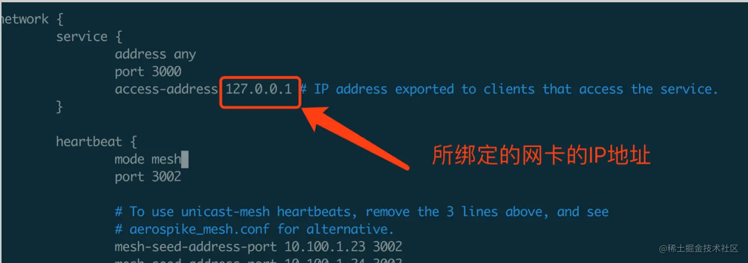 当部署的服务器有多张网卡时,需要指定aerospike服务端监听的网卡。这个需要通过如下参数配置: