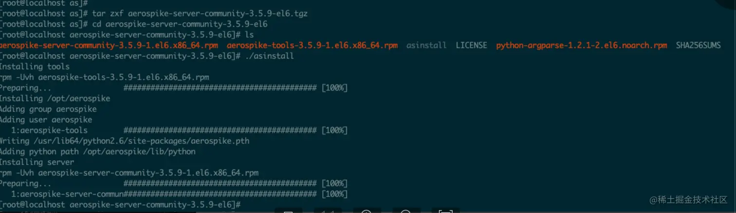 在centos中使用rpm包安装比较方便,可以同时安装server和tools包。但是rpm安装需要root权限,只能在有root权限时才能使用。安装包为特性linux发行版的安装包,如centos 6使用aerospike-server-community-3.5.9-el6.tgz,debian7上使用aerospike-server-community-3.5.9-debian7.tgz。