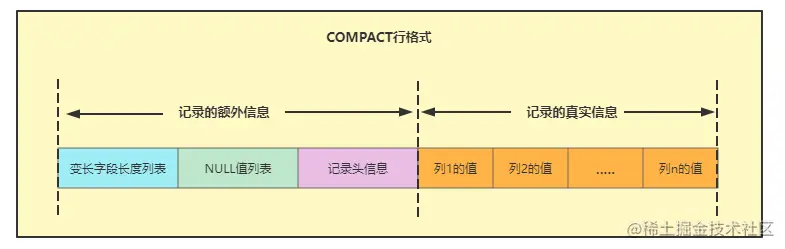 这里的长度不计算记录头信息以及隐藏列那么还剩下如下三部分数据