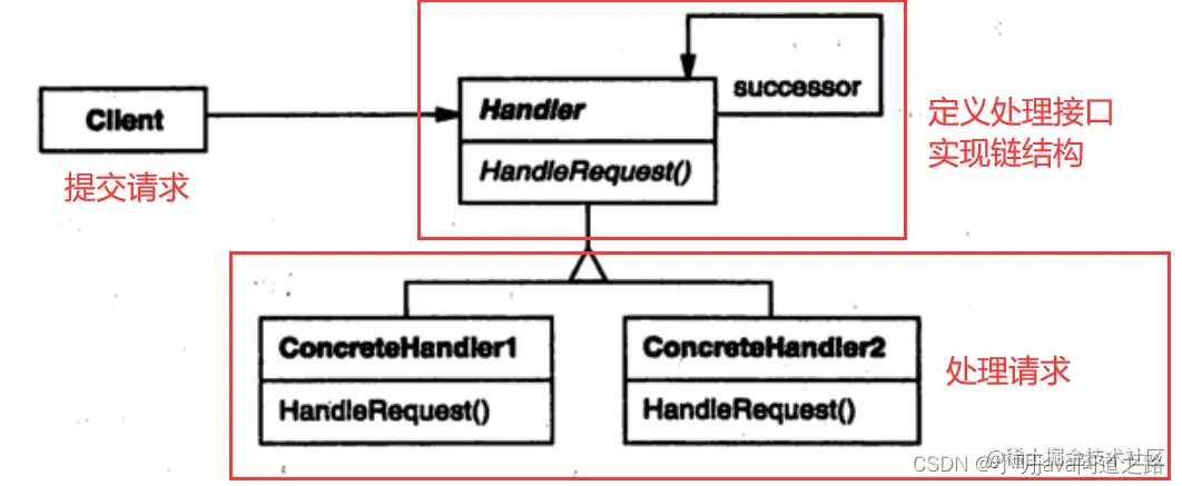 责任链模式也是行为模式的一种,本质上写法和上面策略模式、模板方法、观察者相同,都是定义函数式接口,用lambda实现函数的逻辑。在上面策略模式有类似实现代码
