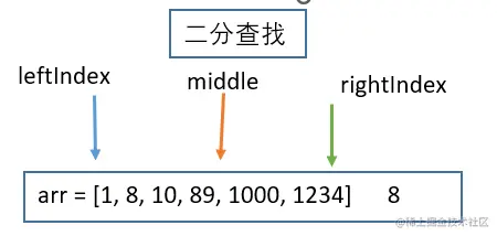 先找到中间的下标 middle = (leftindex + rightindex) / 2, 然后让中间下标的值和findVal进行比较
