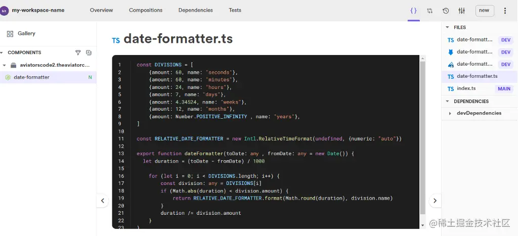 Emy在她正在进行的一个JavaScript项目中使用了组件驱动方法。她刚刚实现了一个计算两个日期之间相对差值的函数,然后她把这个函数作为一个独立的组件导出到她的Bit cloud范围。
