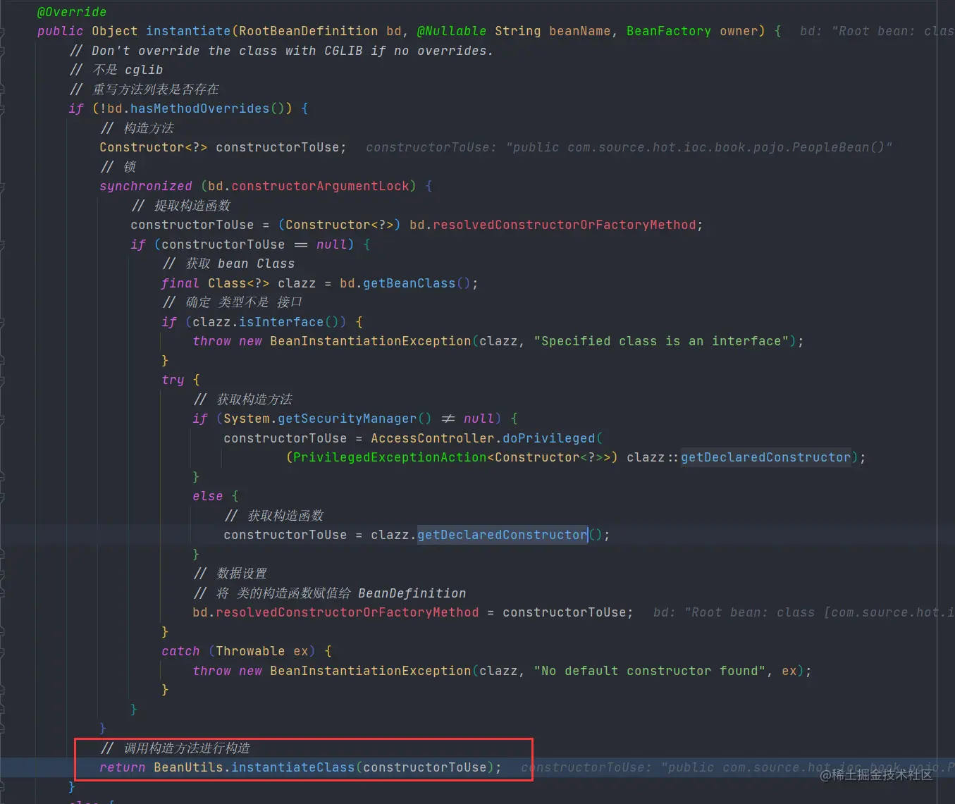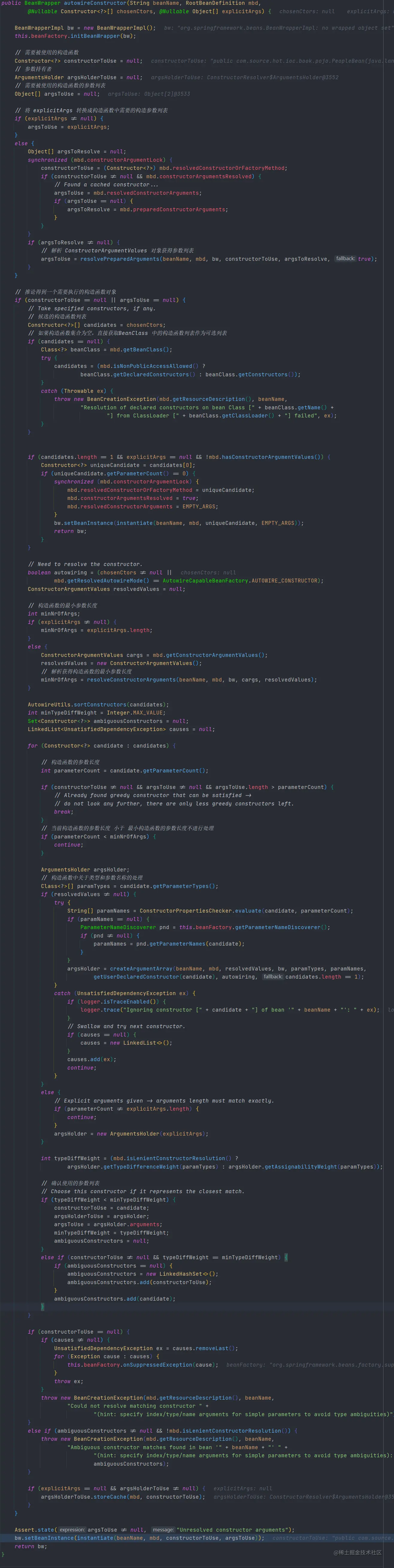 beanClass提取构造函数列表,从构造函数列表中选择一个具体的构造函数(这里采用无参构造的方式)