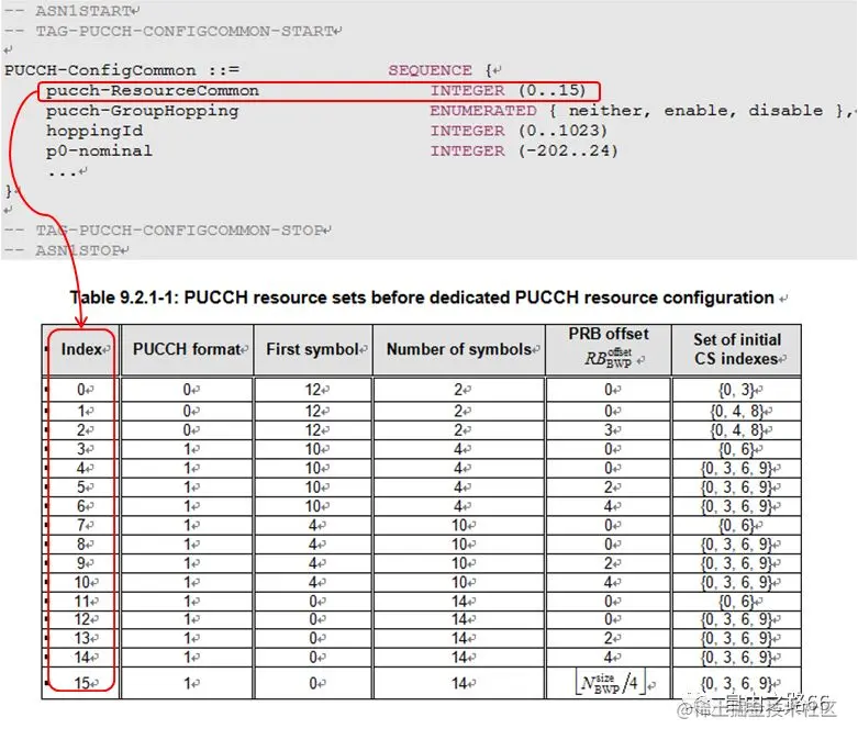 通过上述表格可以确定对应的PUCCH format,起始符号数,PUCCH Symbol数,频域位置及initialCyclicShiftindex。