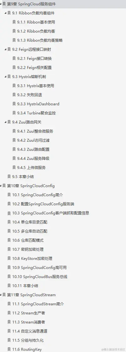 第二部分:SpringCloud篇 第6章SpringCloud简介 第7章SpringCloud与Restful 第8章Eureka注册服务 第9章SpringCloud服务组件 第10章SpringCloudConfig 第11章SpringCloudStream 第12章SpringCloudSleuth 第13章OAuth认证管理