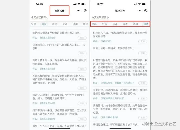 当我们写文案时想不到优美的语句,赶紧试试这个神奇的小程序—【笔神写作】吧!只要输入关键词,系统就会自动生成出相关的文案,十分方便。“妈妈再也不用担心我写文案时词穷了!”