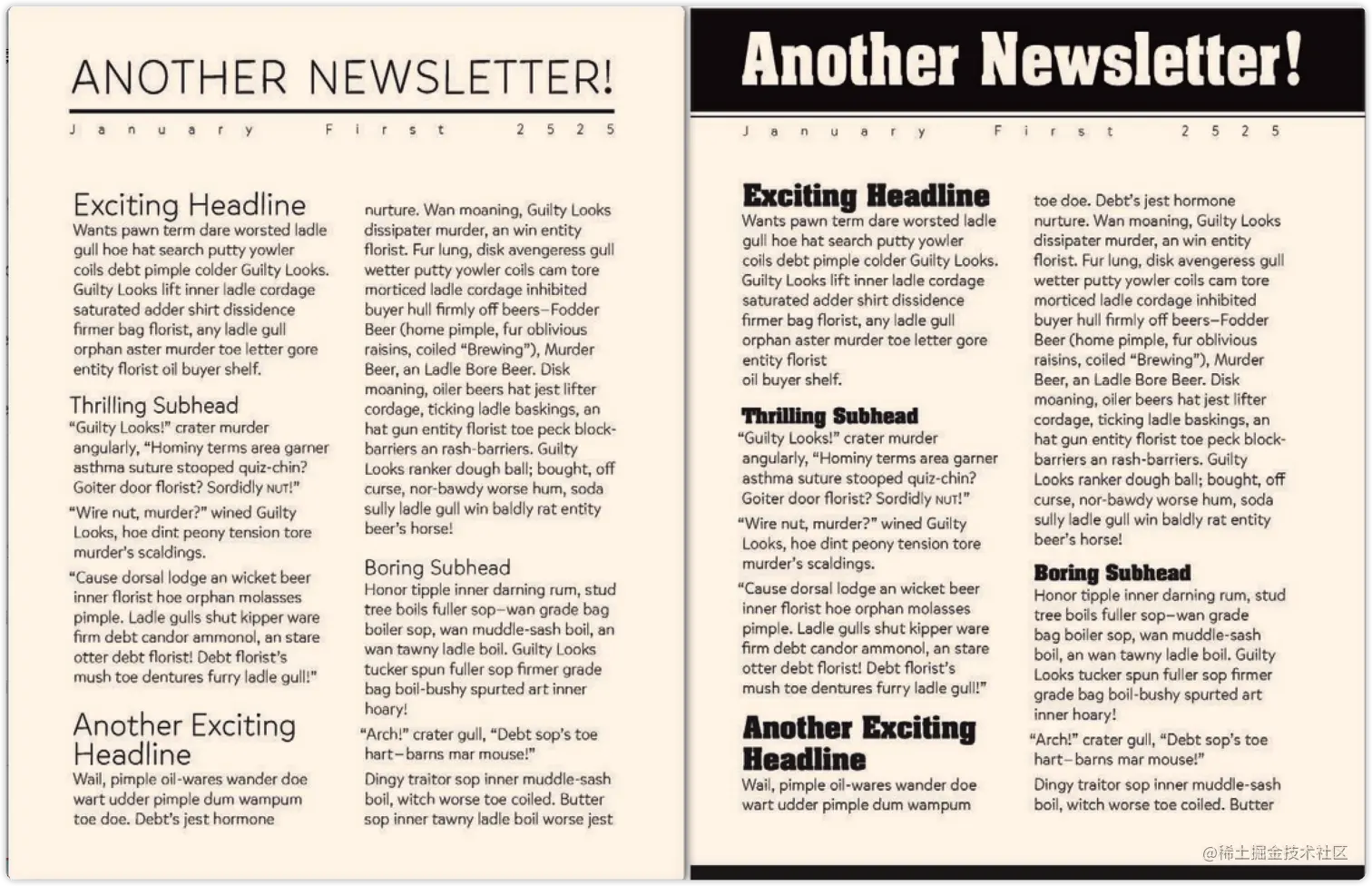 选择字体也能增加对比。这里的对比不仅仅是白纸上浓黑的标题,同时也是这种字体的粗体和细体的对比,全部大写和小写的对比。在这两个版本中,全部大写的粗体也是一种重复。