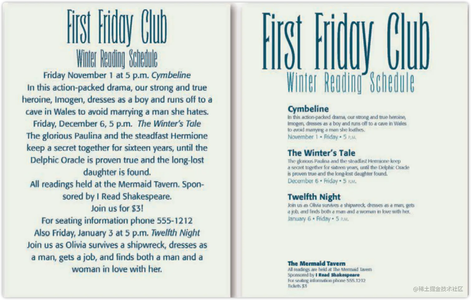 不看正文便能从右边的传单上获取到共列了三场读书会,因为每场读书会的信息都被归入有逻辑的亲密关系中。