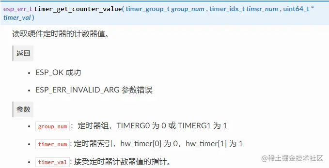 要检查计时器的当前值,请调用timer_get_counter_value()或timer_get_counter_time_sec()。